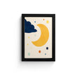 Dive into a world where the moon illuminates the starry sky, captured in this exquisite canvas painting art. The textured navy cloud, golden crescent moon, and multicolored stars create a celestial dance that breathes life into any space. Perfect as wall art or a framed art print, this piece harmonizes modern design with timeless beauty.