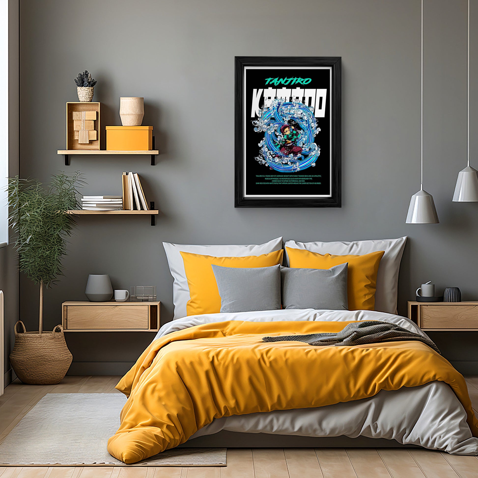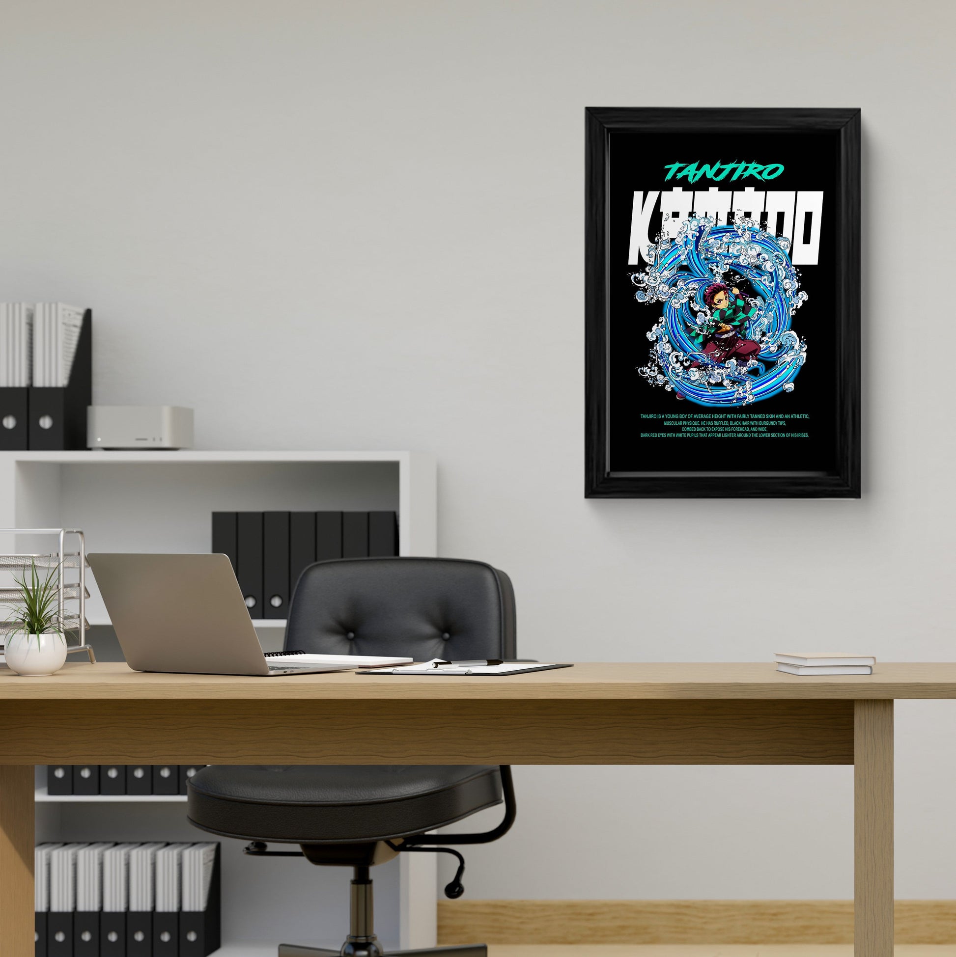 Elevate your space with this captivating Tanjiro Kamado wall art. Featuring the iconic Demon Slayer character in a dynamic pose amidst swirling water, this framed print is a must-have for anime fans. Crafted with high-quality canvas and a sleek black frame, this piece adds a touch of style and intrigue to any room. Perfect for home decor, offices, or gifts, this Tanjiro Kamado wall art is sure to make a statement.