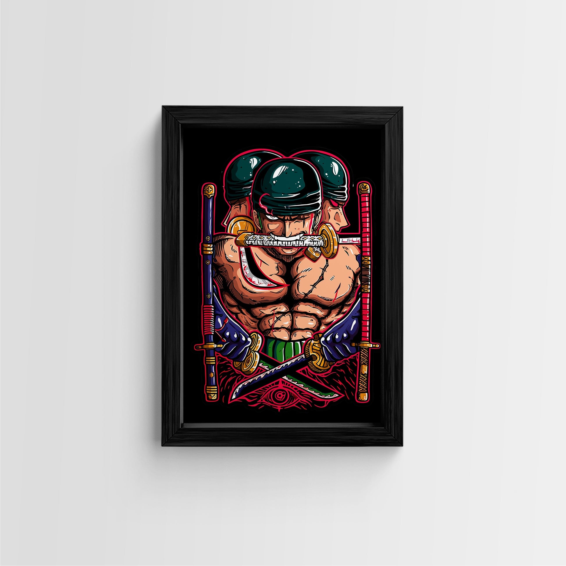 This vibrant framed art print showcases Roronoa Zoro, the swordsman of the Straw Hat Pirates, in his iconic Three-Sword Style. Printed on high-quality canvas, this artwork is a must-have for any One Piece fan. The bold colors and intricate details bring Zoro's powerful presence to life. Hang this piece in your home or office to add a touch of anime inspiration.