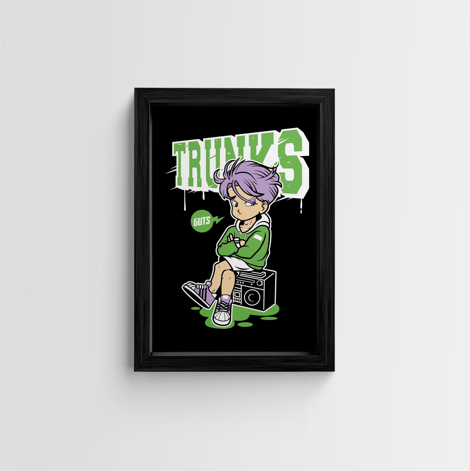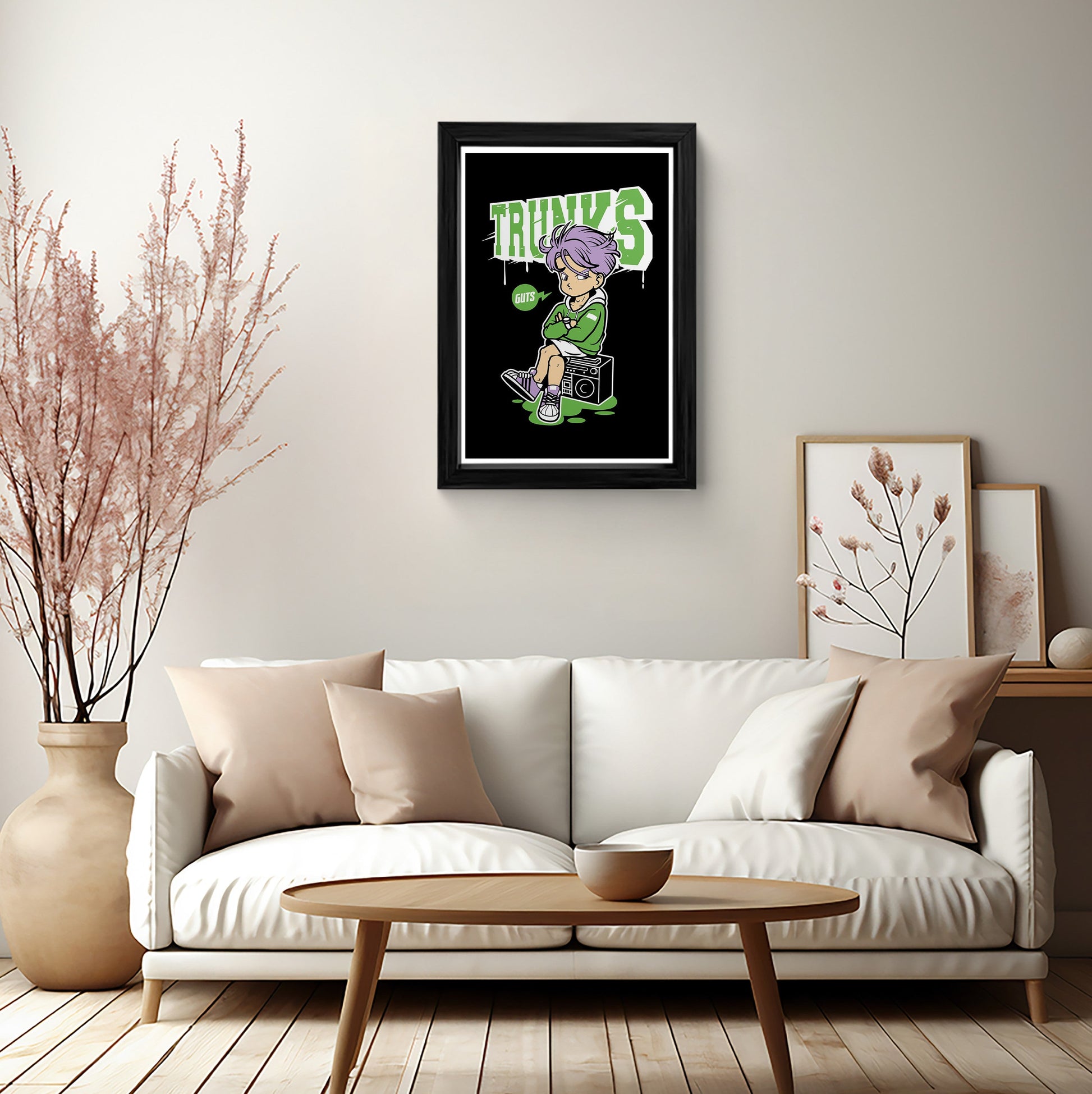 Elevate your space with this vibrant and edgy Trunks Guts framed art print. Featuring a cool, graffiti-inspired design of the iconic Dragon Ball Z character Trunks, this piece is a must-have for anime fans and collectors alike. The high-quality canvas print is beautifully framed in a sleek black frame, adding a touch of sophistication to any room. Perfect for bedrooms, living rooms, or gaming setups, this Trunks Guts wall art will be the centerpiece of your collection.