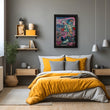 This modern canvas painting art piece, titled “Urban Pulse,” is a vibrant mix of abstract forms and graffiti-inspired elements. It’s a perfect piece of wall art for those looking to add a dynamic, urban touch to their space. The artwork is available as both framed art print and canvas wall art, ensuring it fits seamlessly into various interior designs.