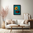 This canvas painting art, a blend of vintage charm and modern aesthetics, features a classic gramophone with a golden horn, set against a vibrant teal backdrop. It’s not just wall art, but a piece that resonates with the soulful tunes of the past. Perfect as framed art print or canvas wall art to add a touch of nostalgia and class to your space.
